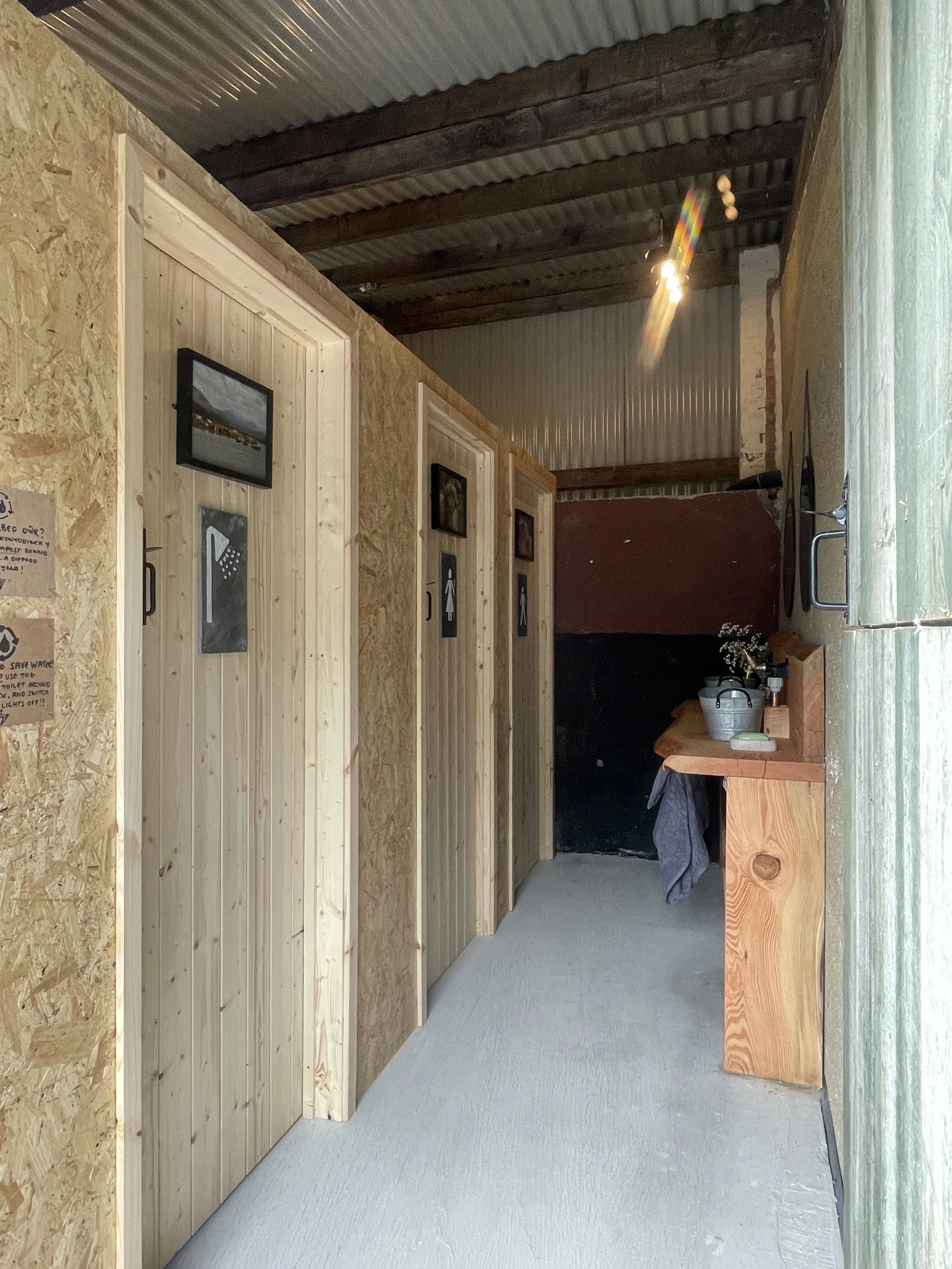 Two toilets, a shower room, sinks and additional compost loo are all situated in the courtyard next to the hay barn